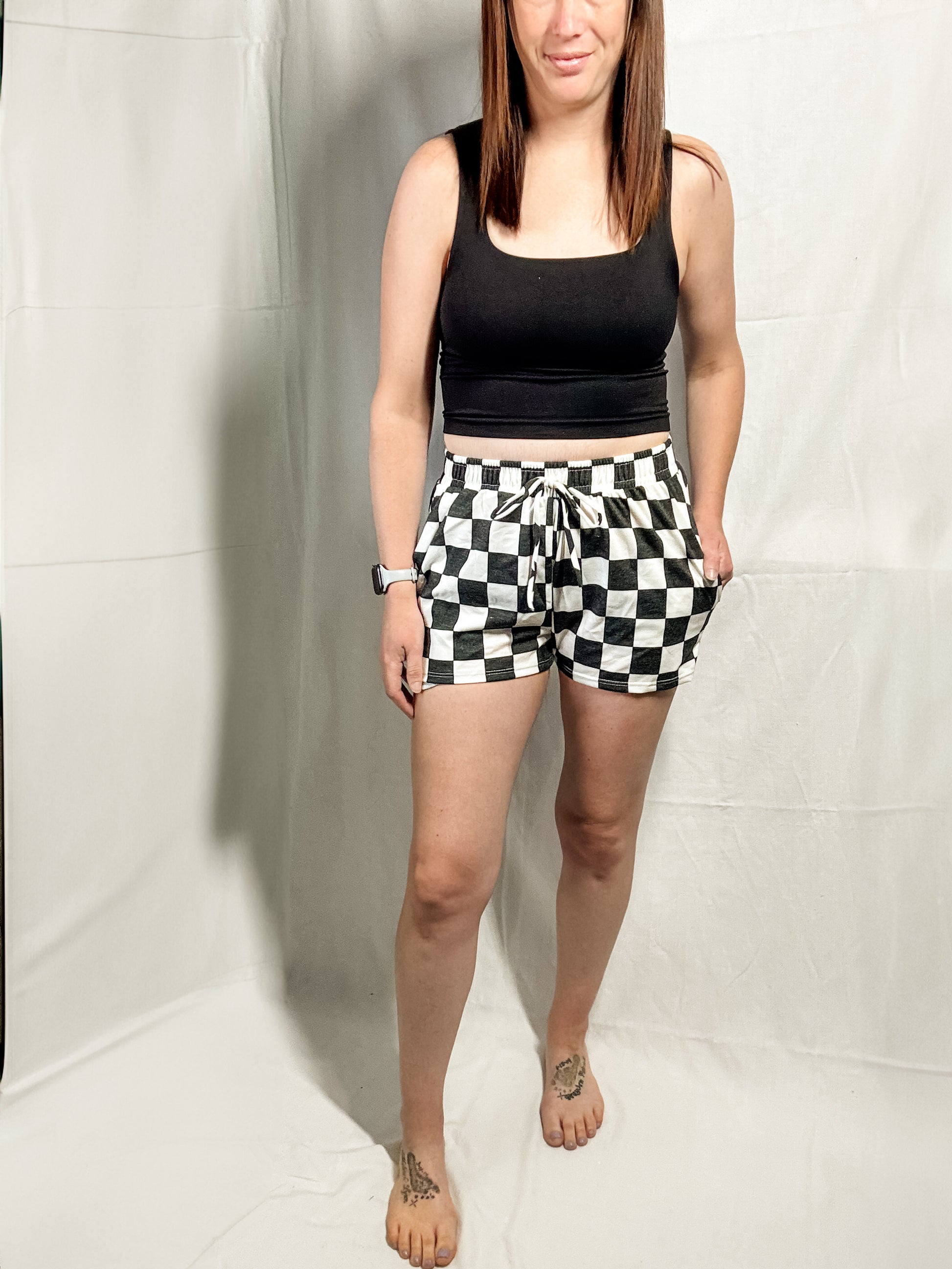 Buckle up… style’s hitting top speed. The Fast Lane Shorts bring bold energy with their black-and-white checkered print and laid-back comfort that keeps up with your pace. Designed with a stretchy elastic waistband, adjustable drawstring, and pockets for whatever you’re carrying, these shorts are made for moving fast or slow.