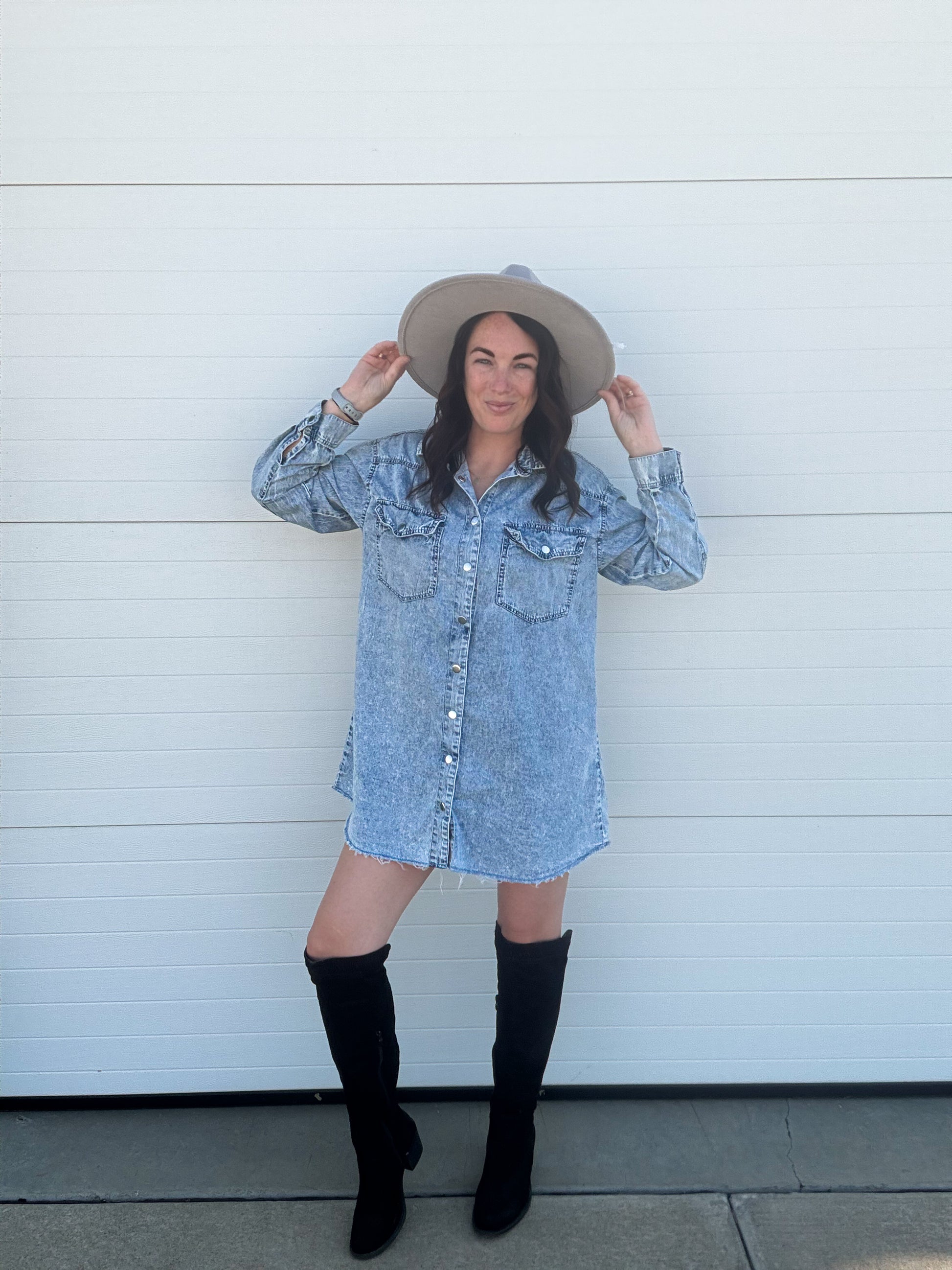 Meet your new go-to! This easy, one-and-done piece is soft, breathable 100% cotton in the prettiest Beau Blue wash. Effortless to style and flattering for every day, itâs the kind of dress youâll reach for on repeatâwhether youâre headed to brunch, a fall festival, or just running errands in style.