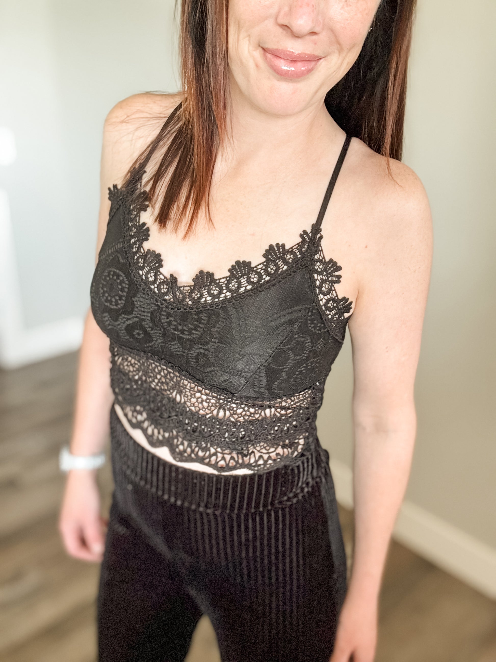 Add a little lace to your lineup with the Boho Beauty Lace Bralette Crop Tank — the ultimate flirty-meets-effortless piece you’ll want to wear on repeat. With dreamy scalloped trim, delicate crochet details, and adjustable straps, this top is lightweight, comfy, and full of charm.